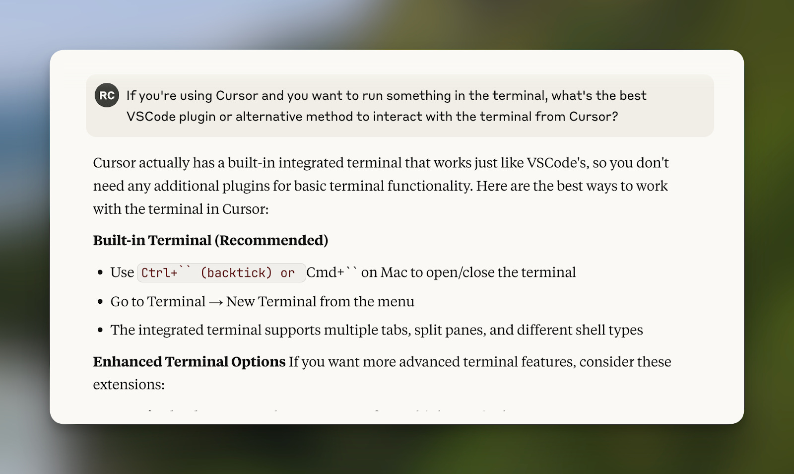 There’s a great tutorial on Claire Vo's "How I AI" podcast: A 3-step AI coding workflow for solo founders | Ryan Carson (5x founder) where the guest went over a very structured methodology for AI development. He creates these README files and has the AI check off items as it goes. I'm wondering if Cursor has something like that natively built-in. I want to investigate that a little further, as I think breaking down these tasks and traceability will be key when building more complex features.
